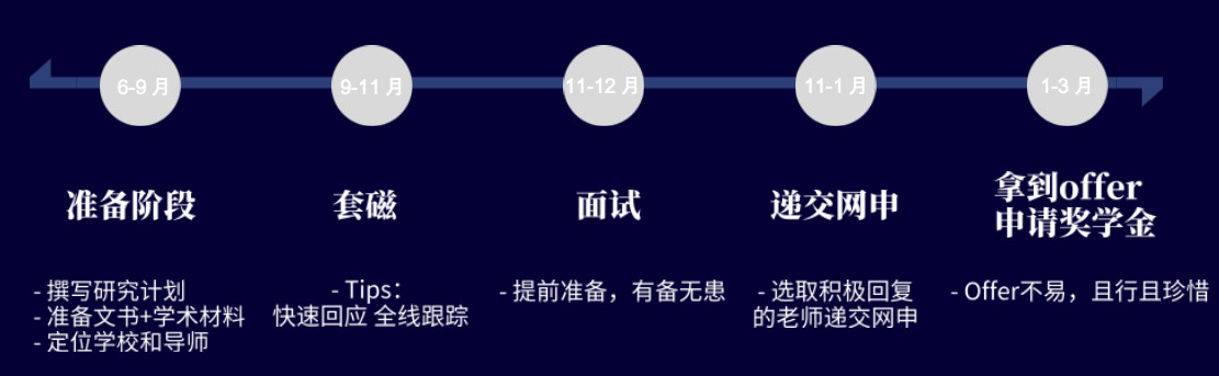这张时间轴,就是申博的大致规划了。如果你要2021年入学,那2020年6月你就要开始撰写研究计划,准备文书,定位学校和老师了!