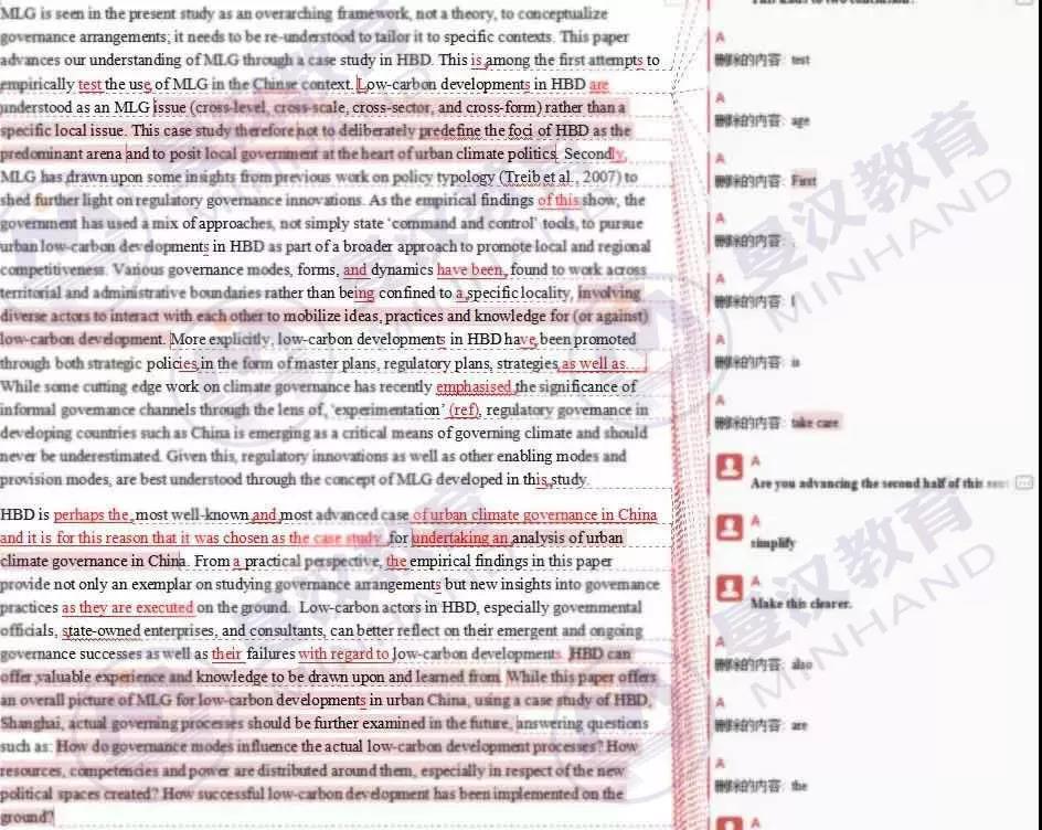 曼汉学院论文英语润色服务正是基于广大科研学者的这一需求,凭借我们总部在曼彻斯特的英语母语导师编辑团队在修改论文的长期资深经验,不仅能在毕业论文中为同学们顺利拿到高分毕业,也能帮助我们客户的每一篇学术论文都能达到国际高水平杂志对论文语言文字上的苛刻要求,化解偏见,推动审稿的进程。