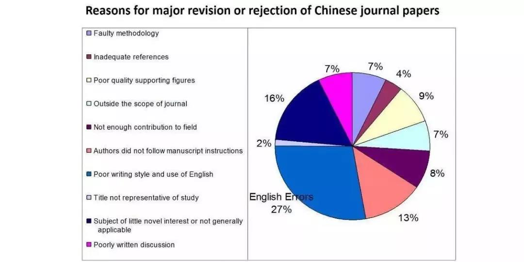 据统计,在论文写作时83% 以上的非英语母语学者会受到语法问题、专业术语等语言问题的困扰。对毕业论文来说,英国每年毕业论文通过率只有70%左右,而论文发表上因语言问题被Pass掉的论文占到拒稿总数的30% 以上。