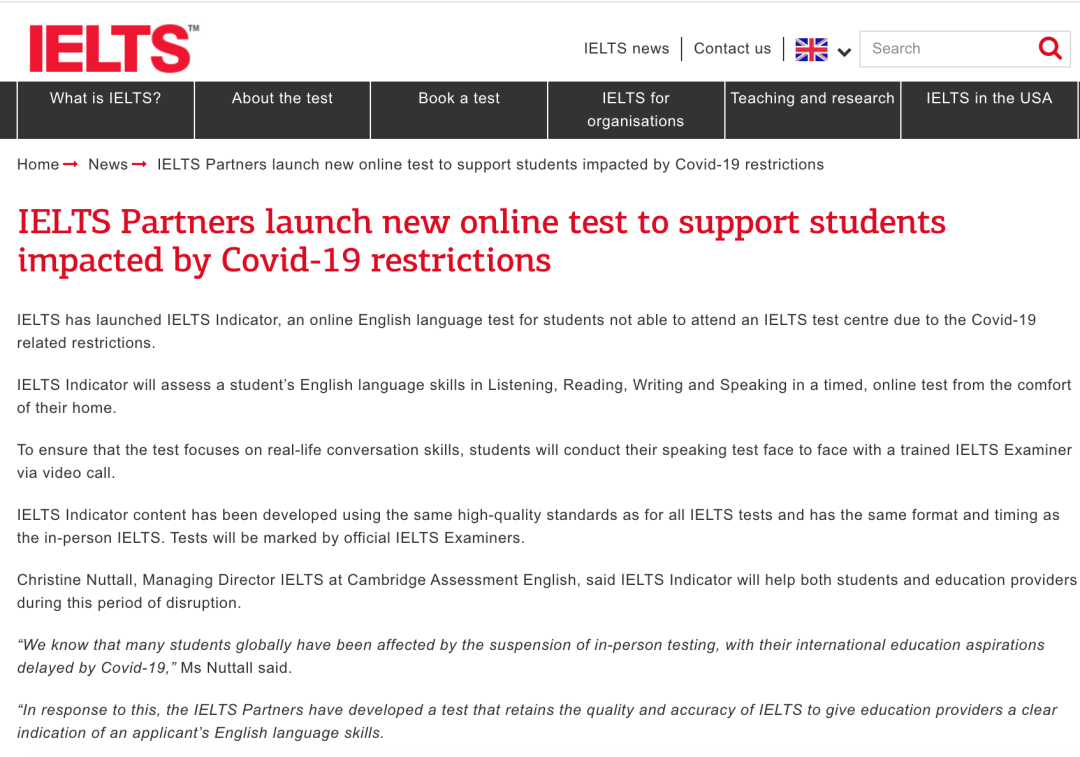 IELTS Indicator考试可以从2020年4月22日起接受预约,预订网址为: