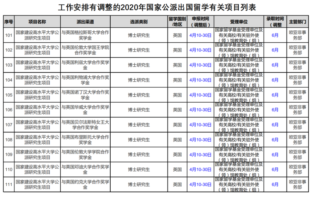 为贯彻落实习近平总书记关于防控新型冠状病毒感染肺炎疫情的重要指示精神和党中央、国务院决策部署,配合做好疫情防控工作,结合实际情况,国家留学基金管理委员会决定对2020年上半年有关国家公派出国留学项目的工作安排进行了调整,也就是说,原定为3月31日的申报截止日期,延长至4月底!