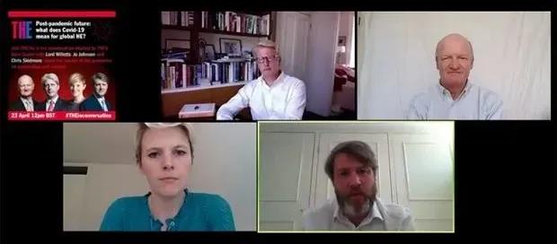 当地时间4月23日,由泰晤士高等教育主办了一场在线研讨活动,其他两位嘉宾分别为前大学部长乔·约翰逊(J. Johnson)和威利兹勋爵(Lord Willetts),共同探讨病毒大流行后全球高等教育的未来。