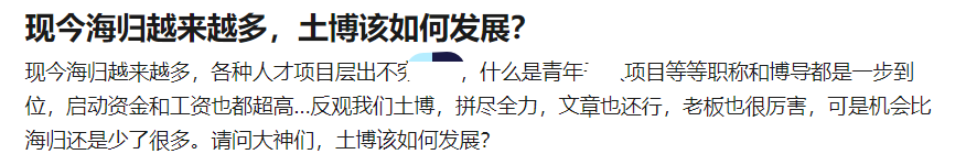 “土博”,又名国产博士。相对于“洋博”,土博在薪资待遇、发展前景、职业晋升中处于劣势地位,从“土”“洋”命名区别就可见一斑。虽然小曼对所有为人类进步、作文明先驱、领科学发展的博士学者们,都持有同样的敬意,这一敬意绝不因土洋之分有所区别。但绕不开一个现实问题:博士在国内就业,尤其是高校教职岗,存在着一条歧视链,即多数情况下,海归博士优于国内博士。