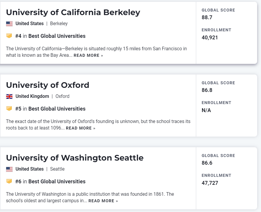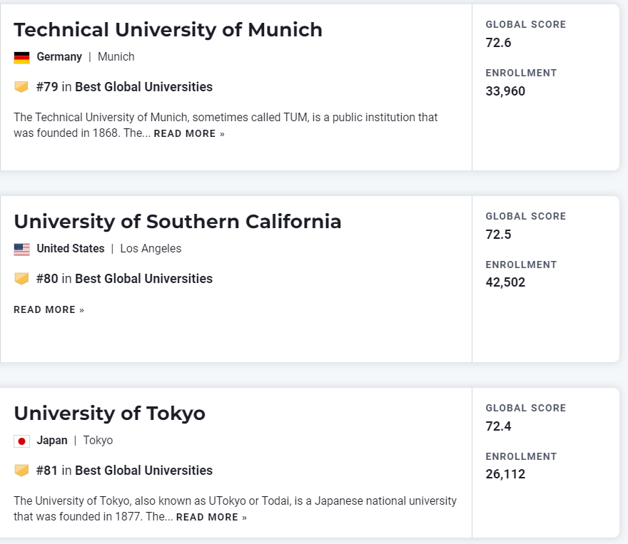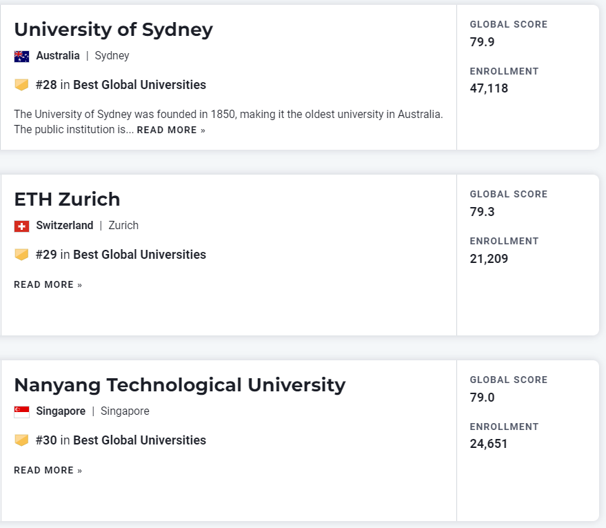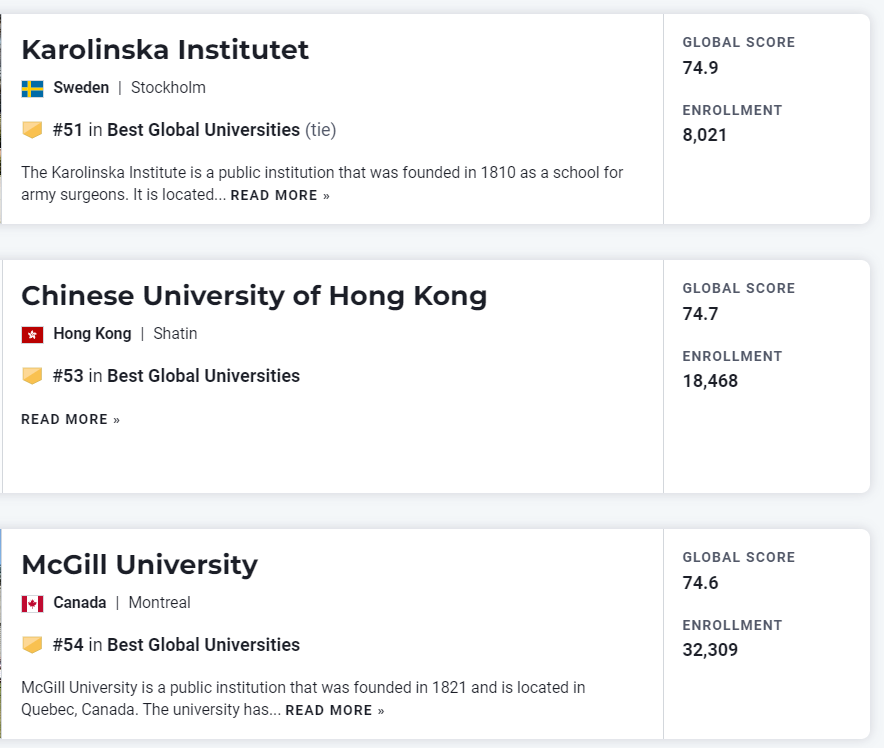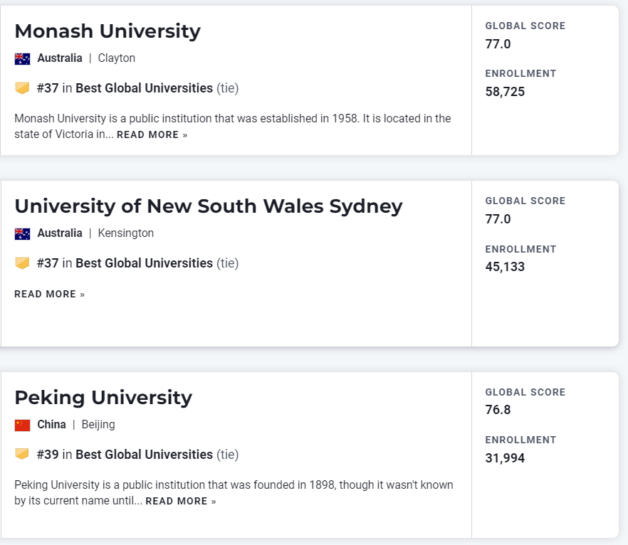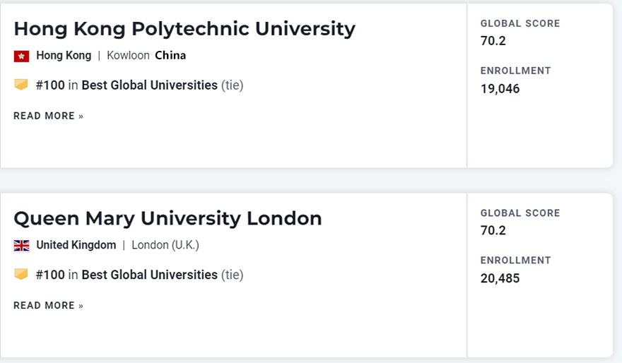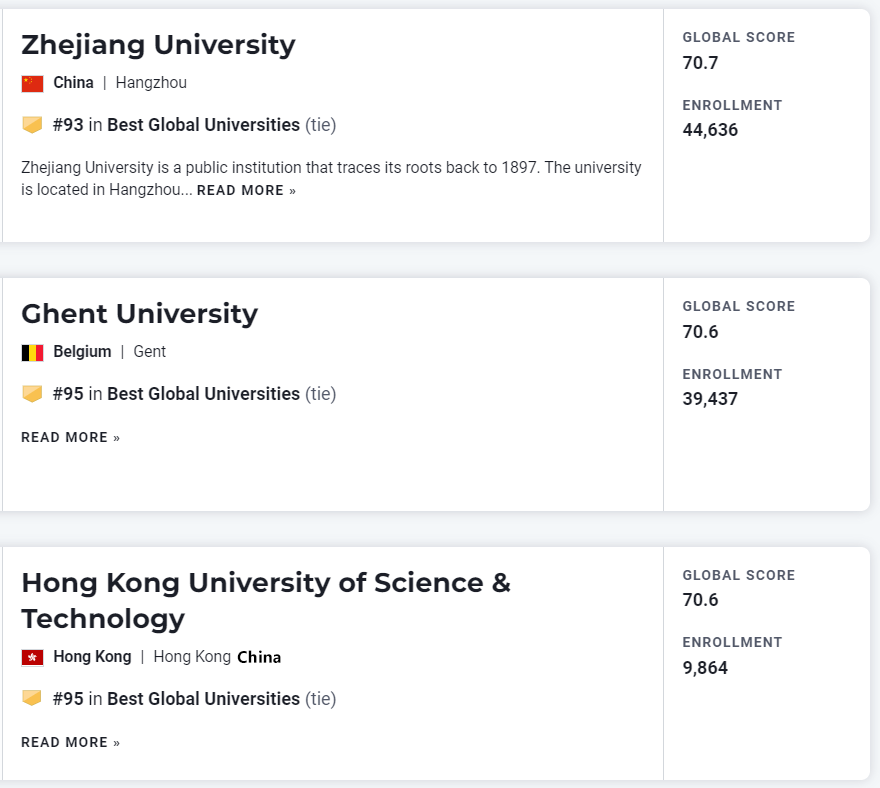 本次U.S. News世界大学排名涉及95个国家/地区的2000所顶尖大学。