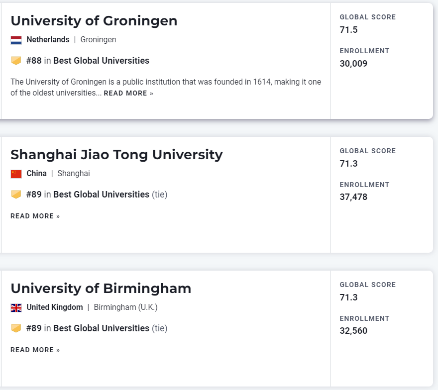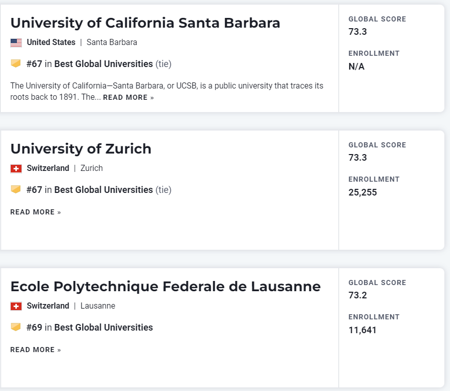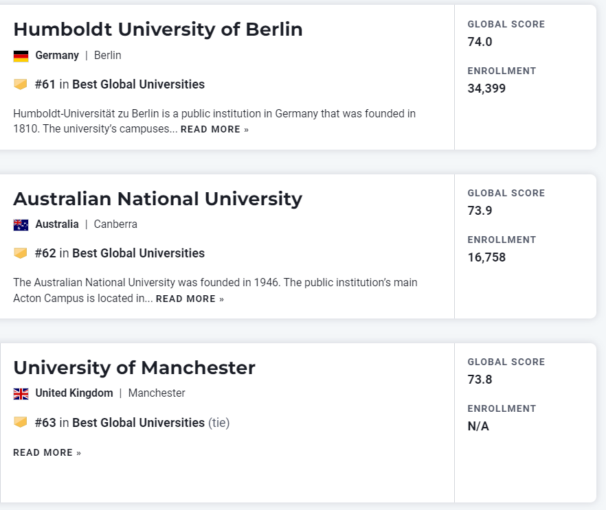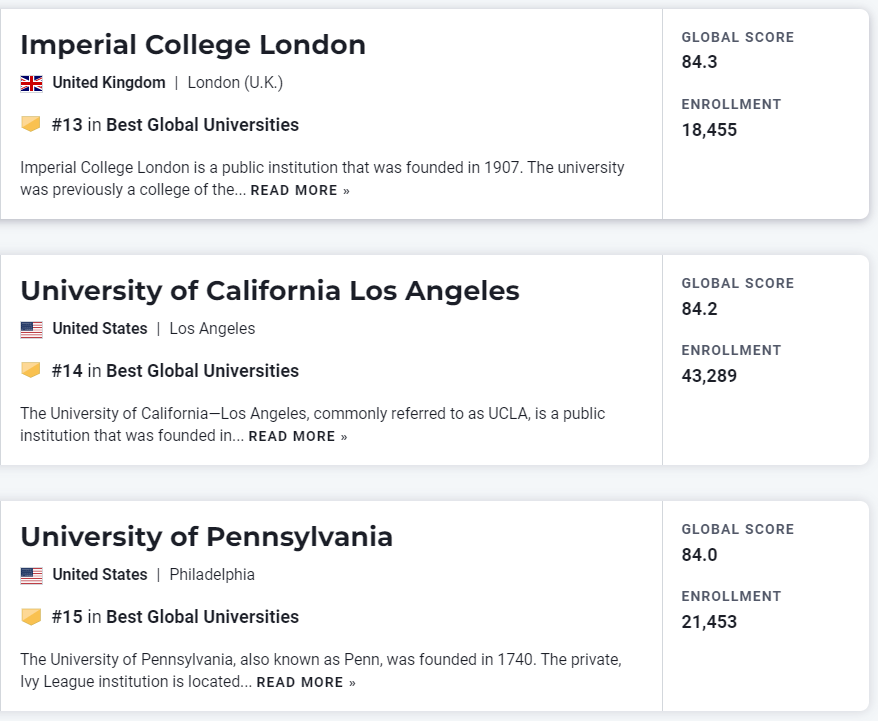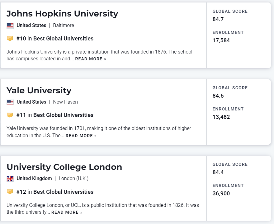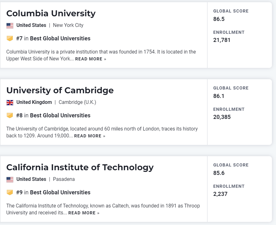本次U.S. News世界大学排名涉及95个国家/地区的2000所顶尖大学。