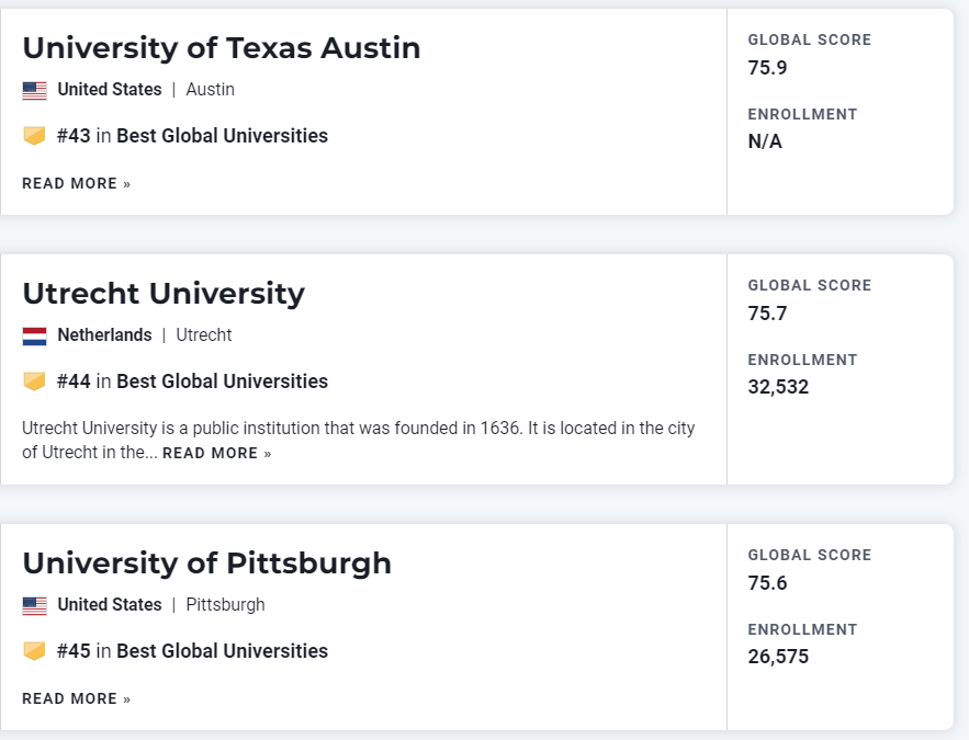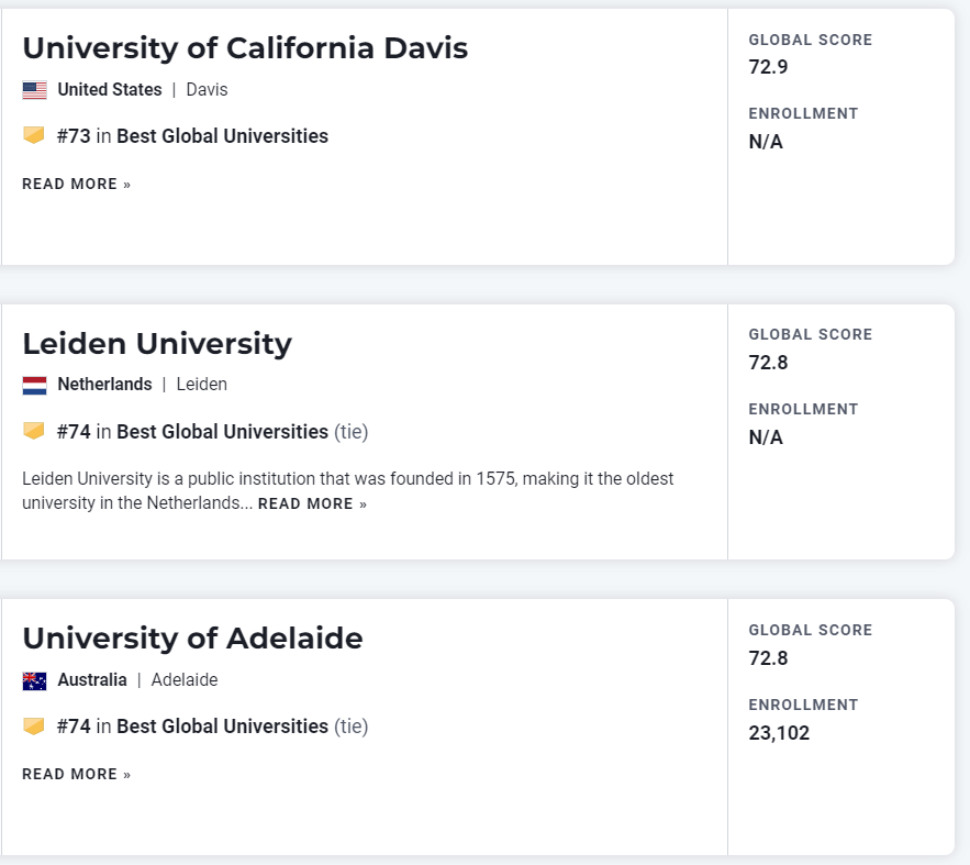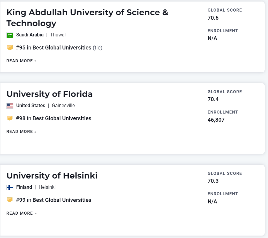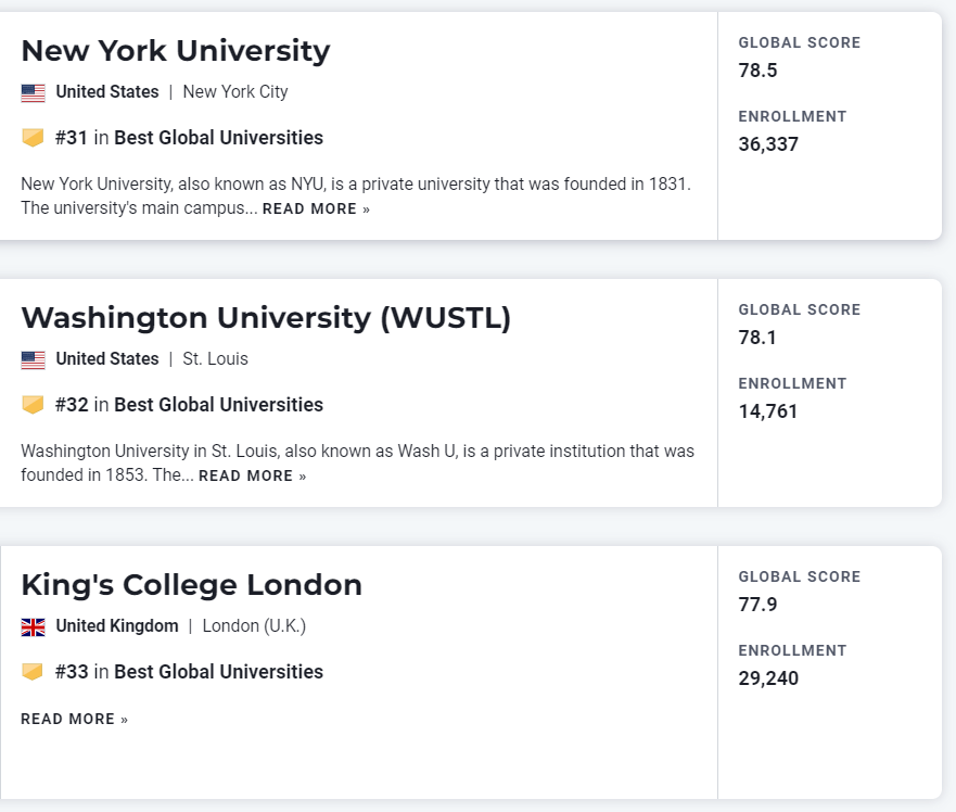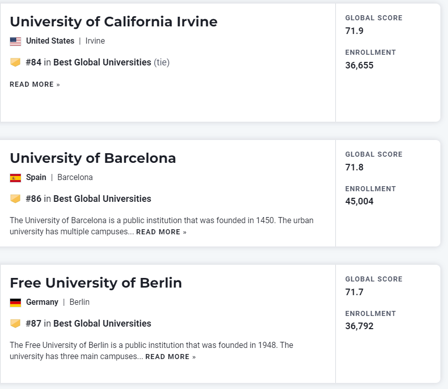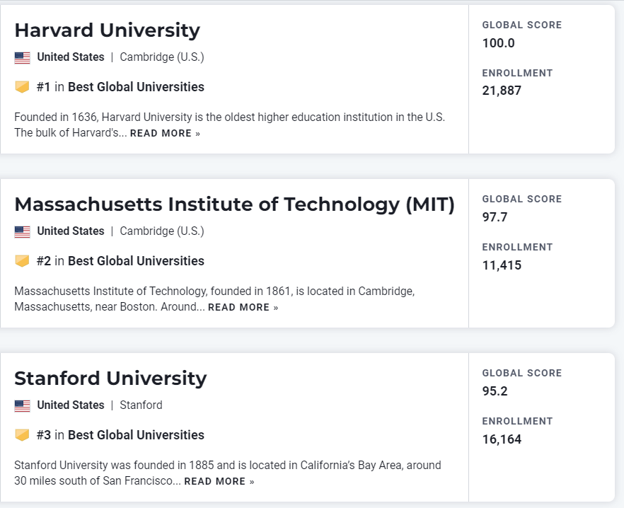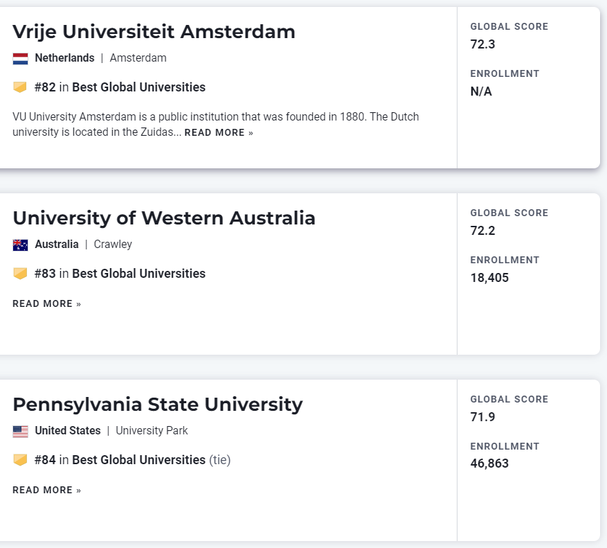 本次U.S. News世界大学排名涉及95个国家/地区的2000所顶尖大学。