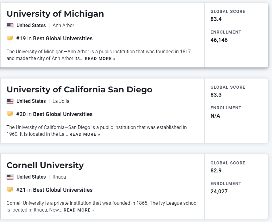 至此,2023年四大权威排名:QS、中国软科、泰晤士高等教育和 U.S.News 世界大学排名全部发布完毕。