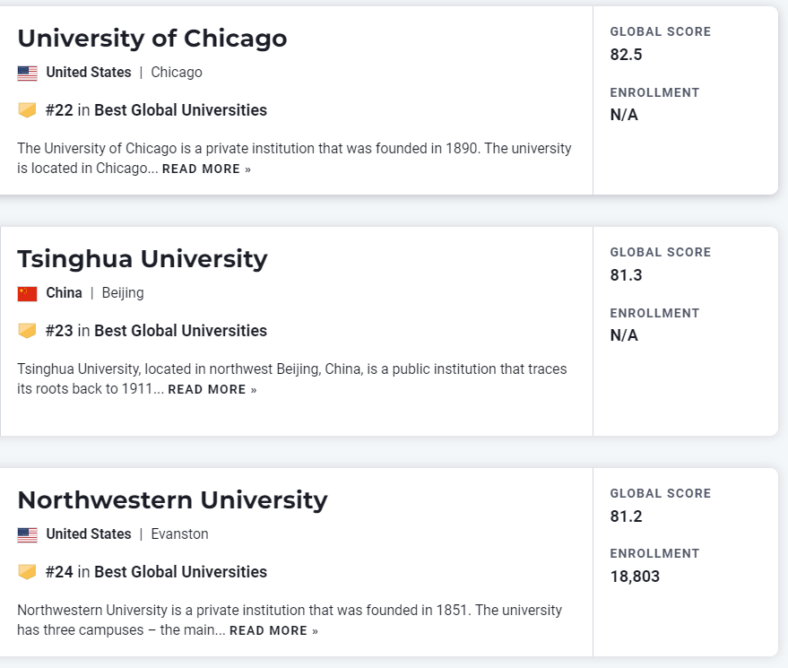 虽然,美国高校强势霸榜,但以牛津、剑桥领衔的他国高校仍旧表现不俗。牛津作为英国高校的“扛把子”,稳稳跻身TOP5,剑桥也不甘落后,排名第8。来自中国的清华大学更是亚洲第一,排名23,比去年上升3位。